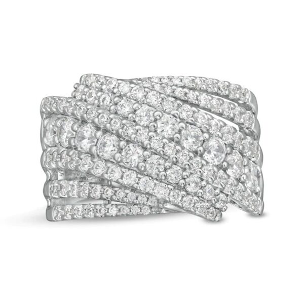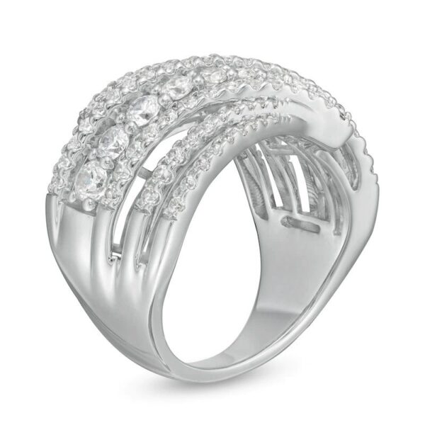 Wrap your finger in sumptuous sparkle with this outstanding diamond ring. Crafted in cool 10K white gold, this decadent design showcases a diamond-lined curved center row bordered in bypassing ribbons of graduated-size diamonds. Layered outer ribbons shimmer with diamonds to complete this stunning multi-row style. Luxurious with 2 cts. t.w. of diamonds and a brilliant buffed luster, this ring is anything but ordinary.