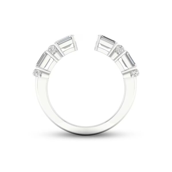Perfect for stacking or for a chic look when worn alone, this beautiful ring showcases an open deconstructed band design set in iconic 14K white gold. Stunning emerald-cut diamonds alternate with duos of brilliant round diamonds for a total diamond weight of 1 carat.